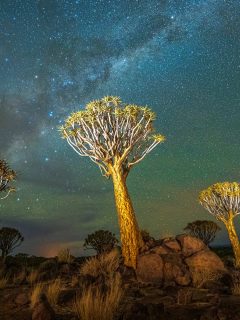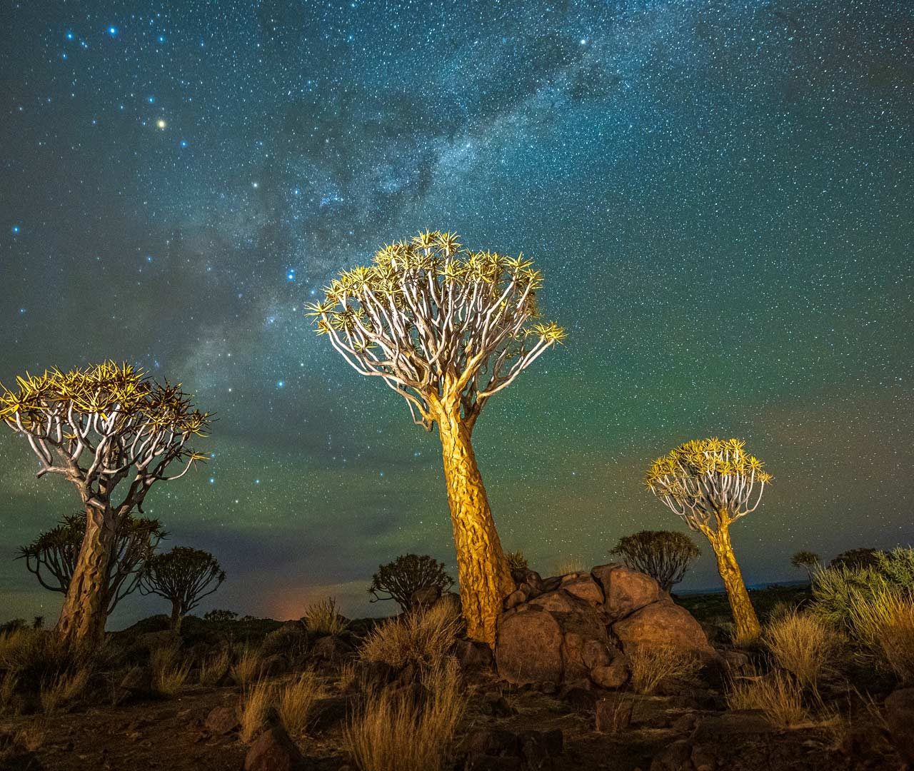 夜晚的箭袋树与银河,基特曼斯胡普,纳米比亚