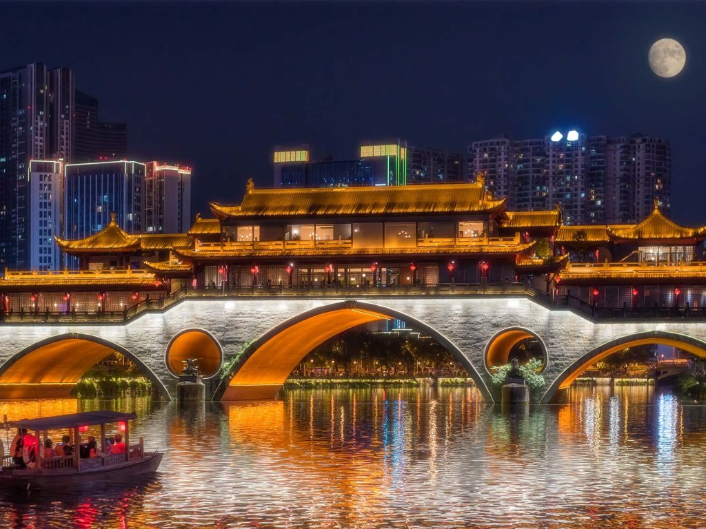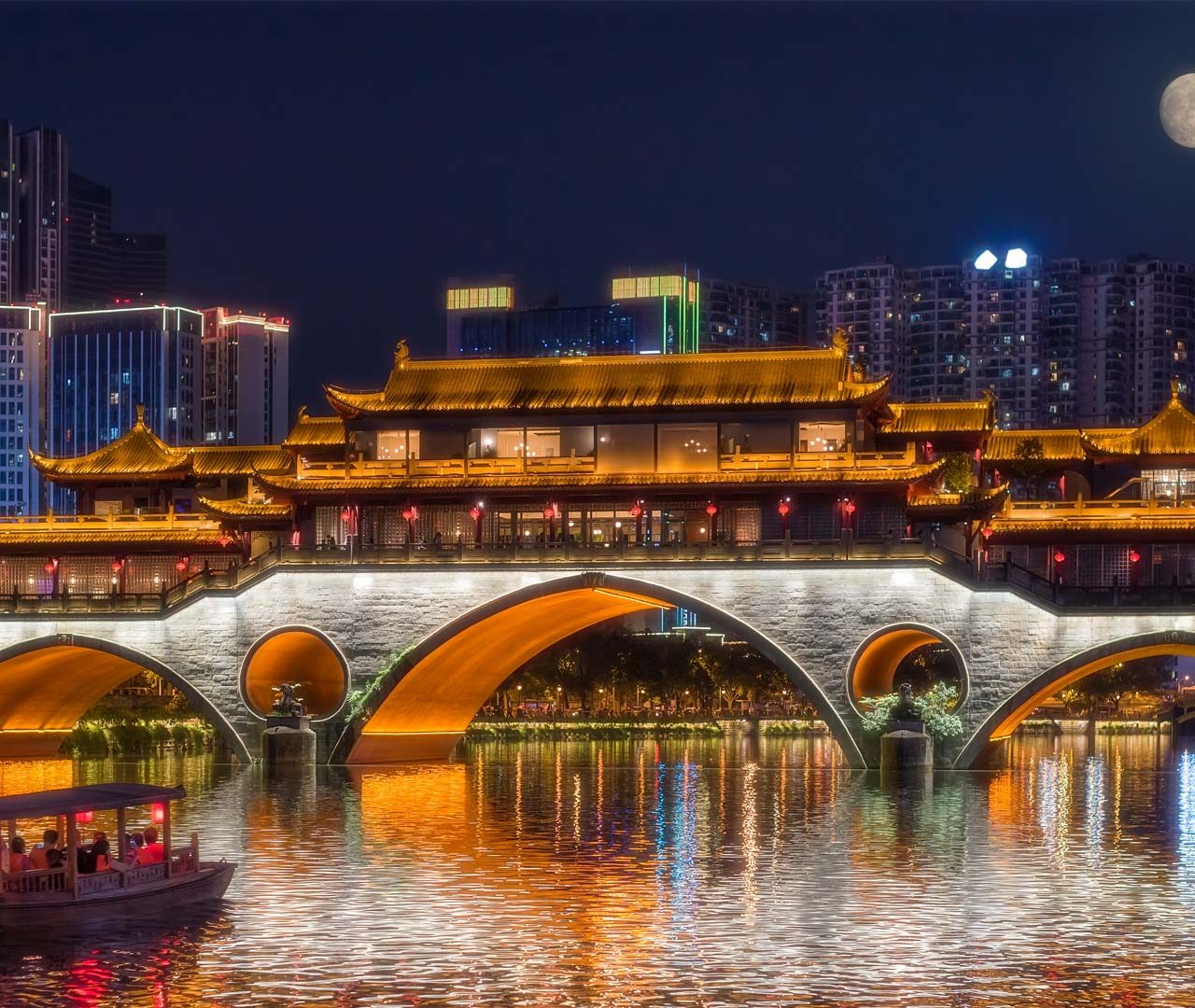 Anshun Bridge illuminated for the Mid-Autumn Festival, Chengdu, China