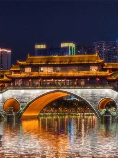 Puente Anshun iluminado para el Fiesta del Medio Otoño, Chengdu, China