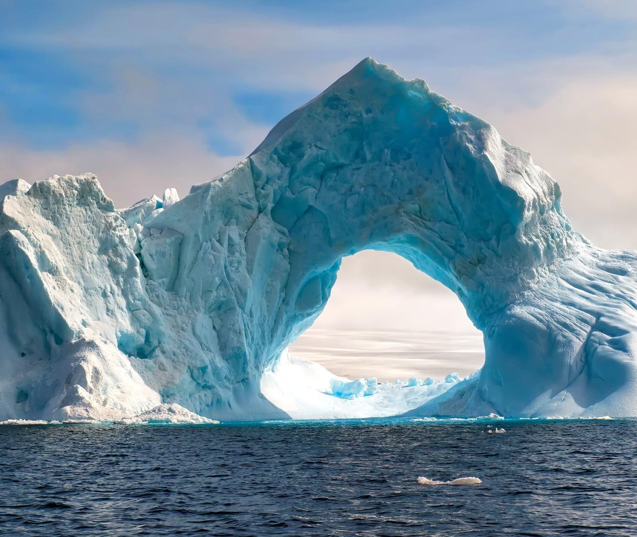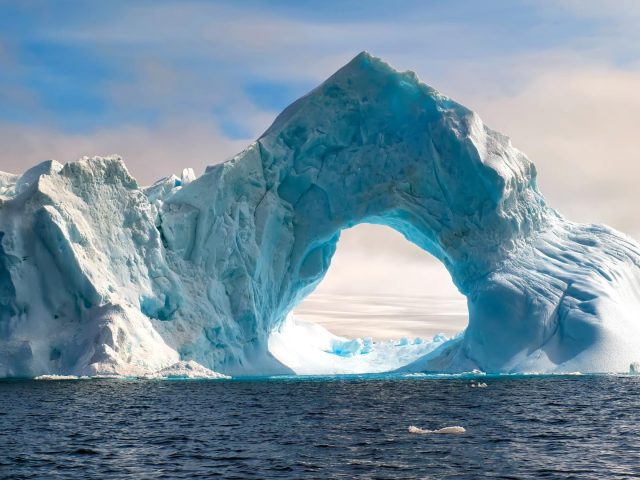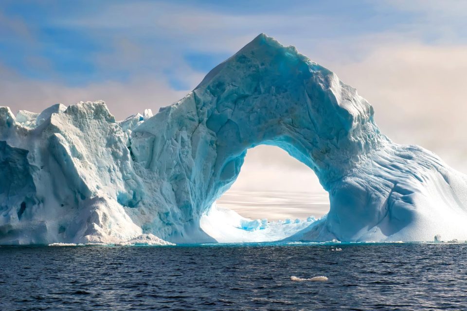 南極の氷山に刻まれた天然のアーチ, 南極大陸