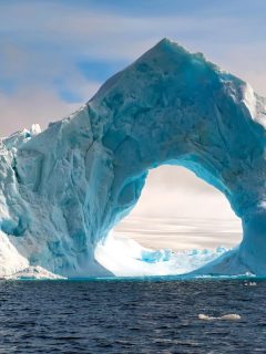 Arche naturelle sculptée dans un iceberg, Antarctique