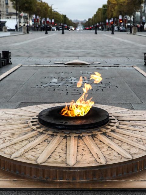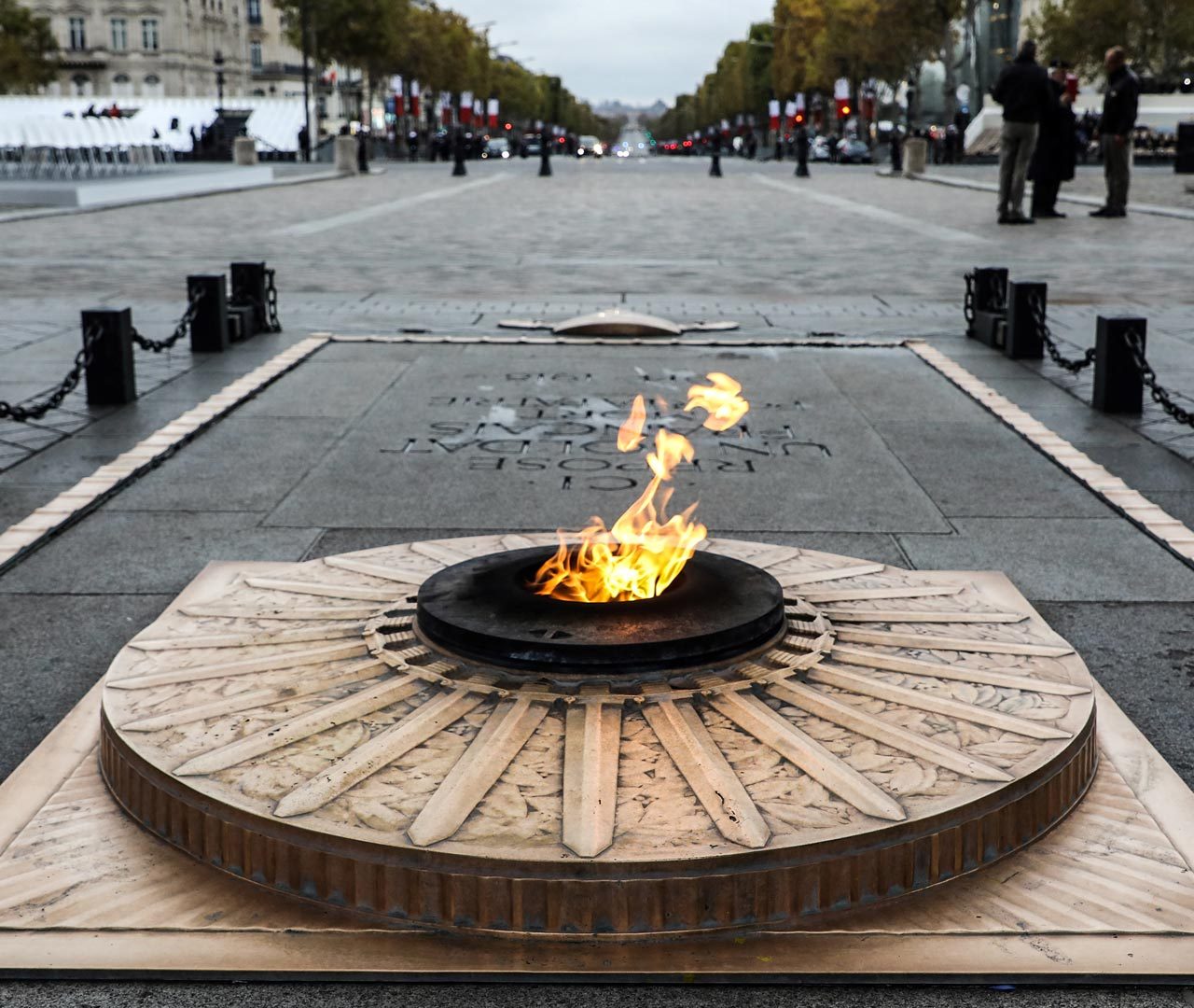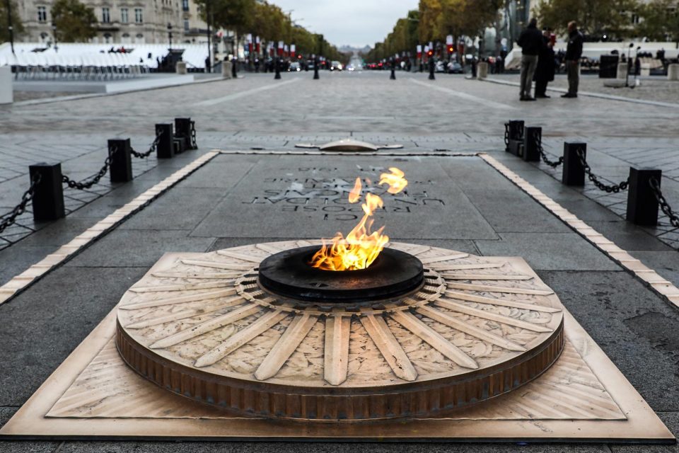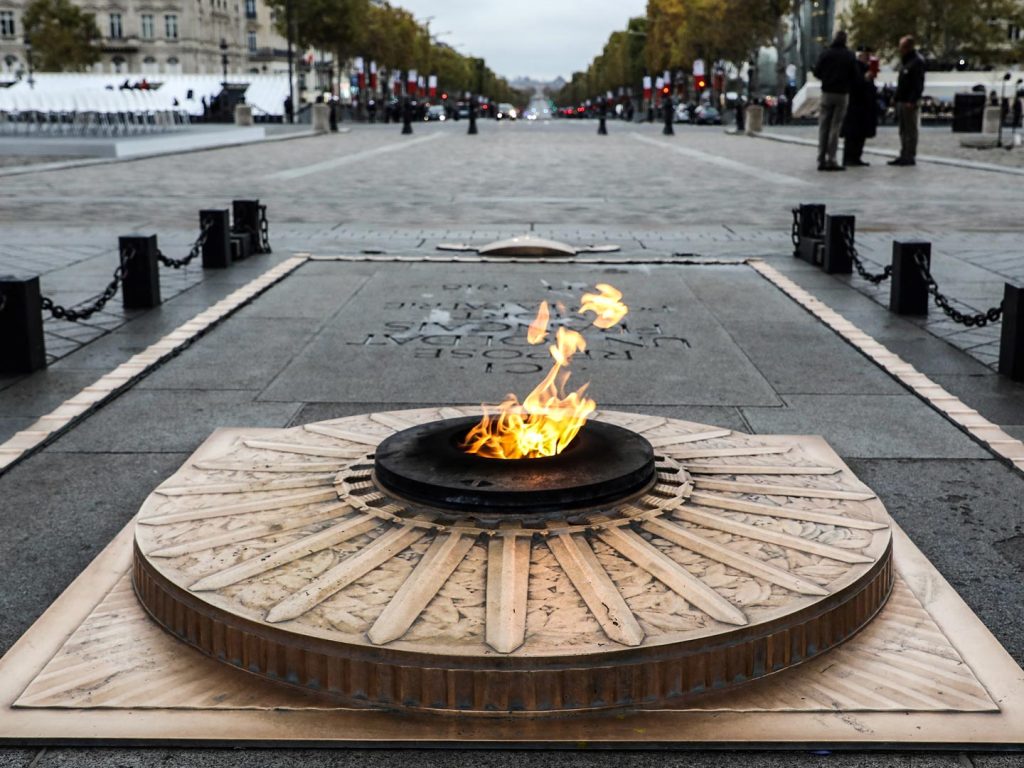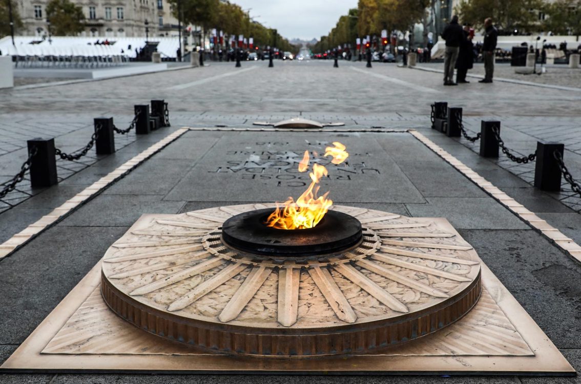 Tombe du soldat inconnu sous l’Arc de Triomphe à Paris lors des commémorations du 11 novembre