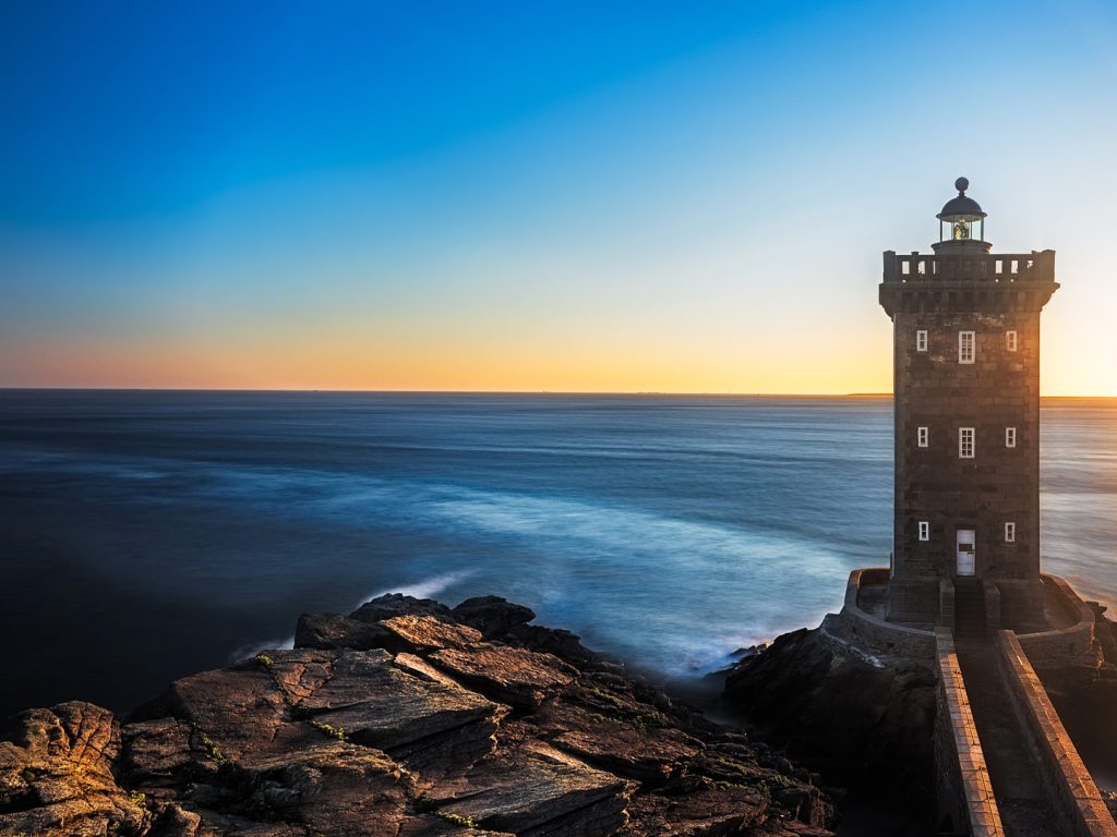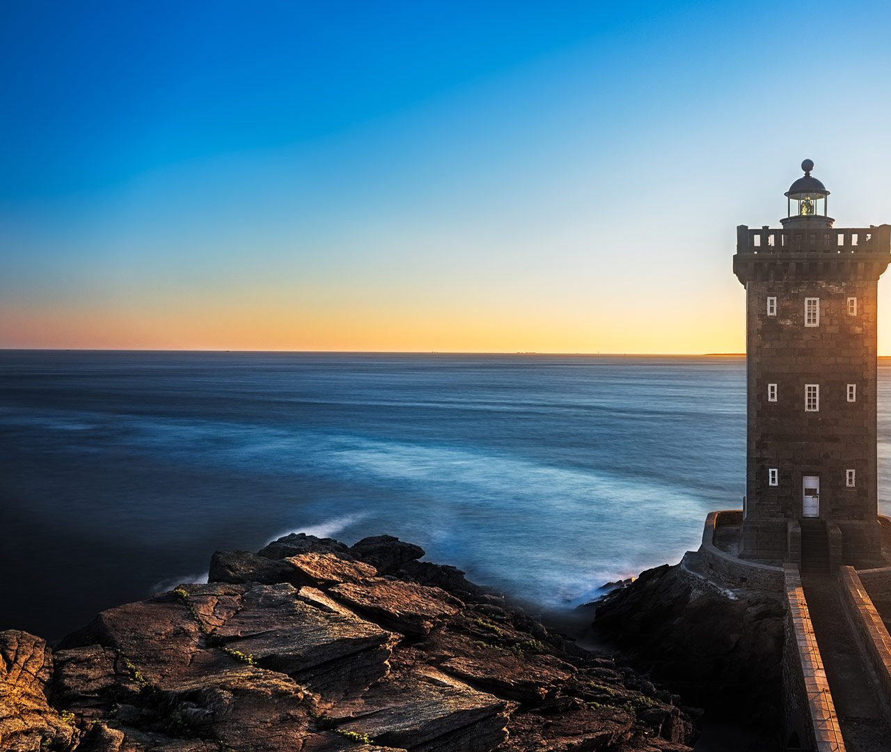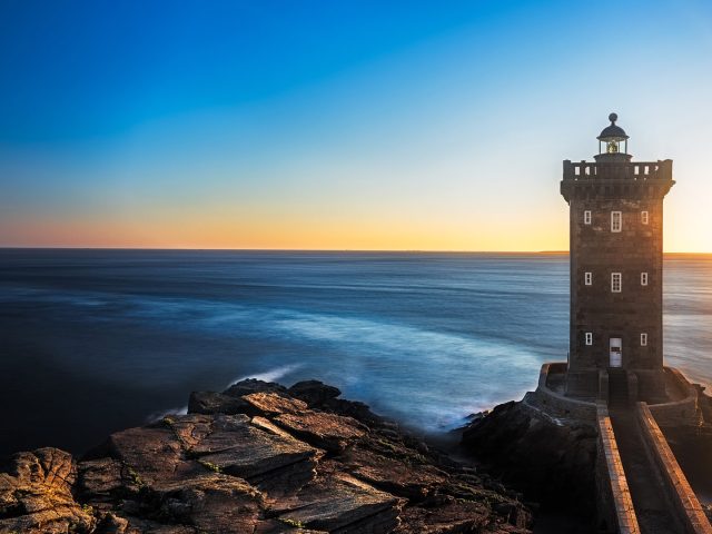 Le phare de Kermorvan au coucher de soleil, Bretagne, France