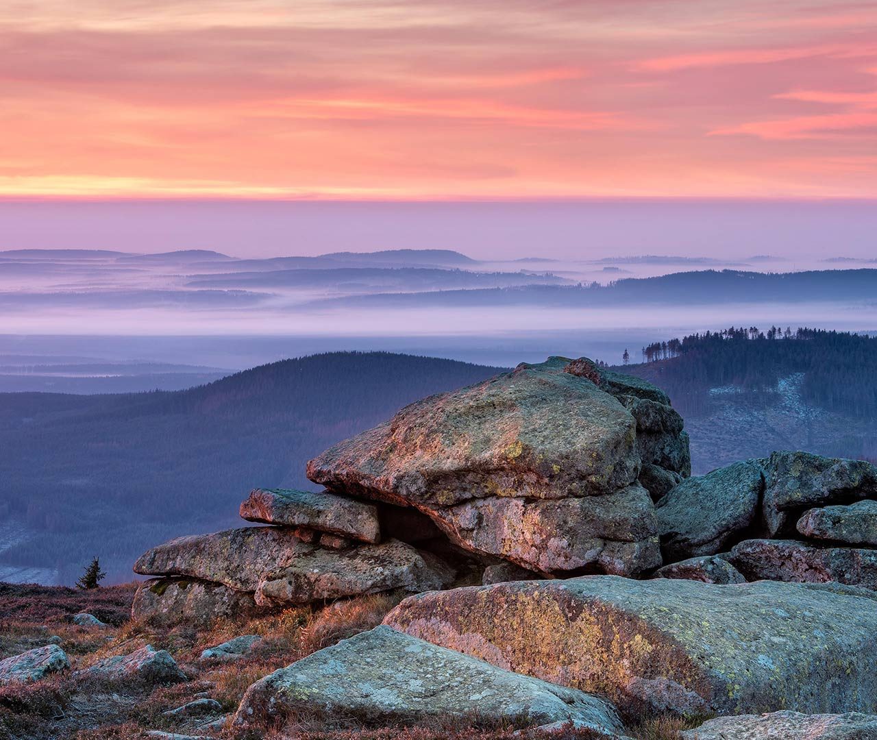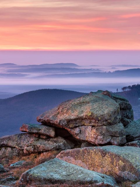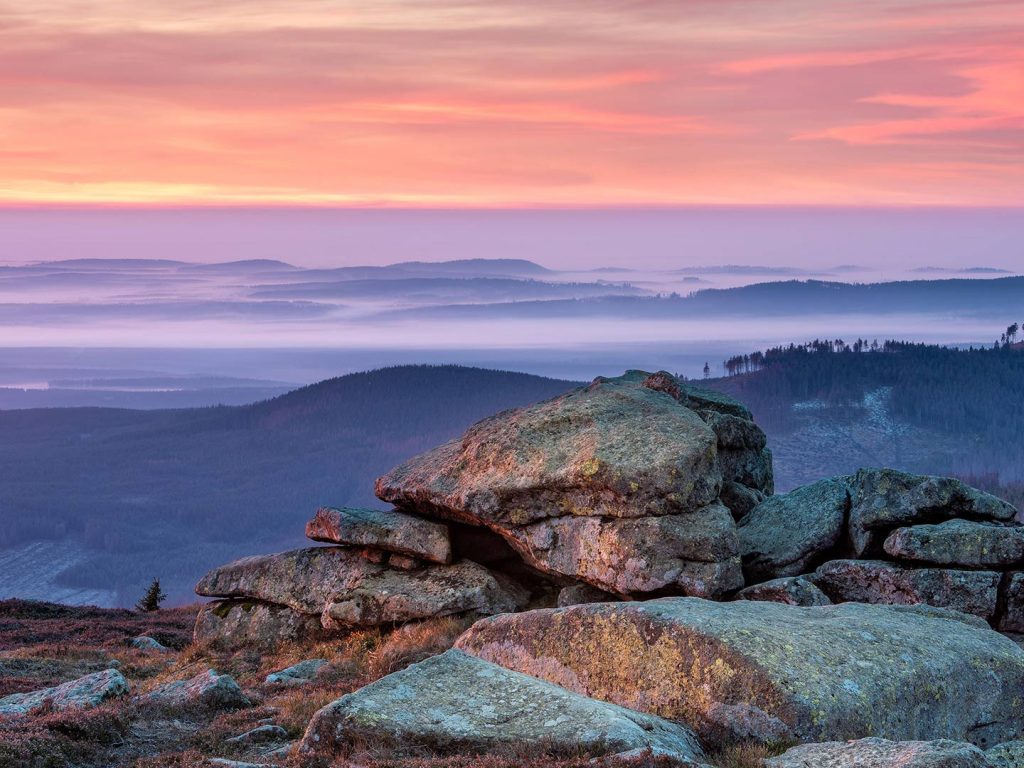 Sonnenaufgang auf dem Brocken, Nationalpark Harz, Sachsen‑Anhalt