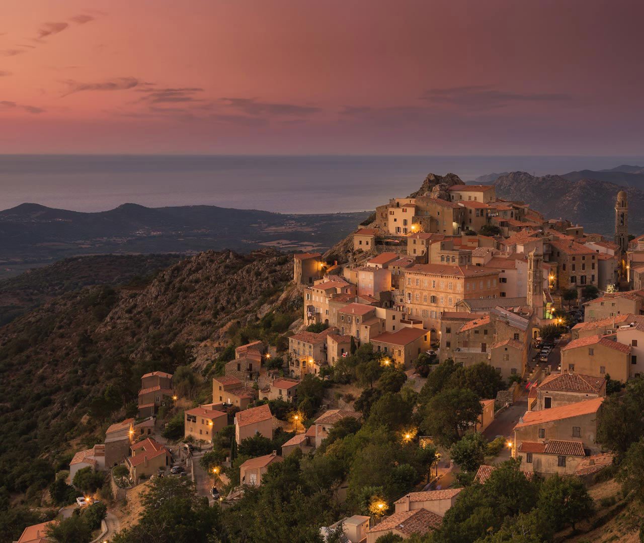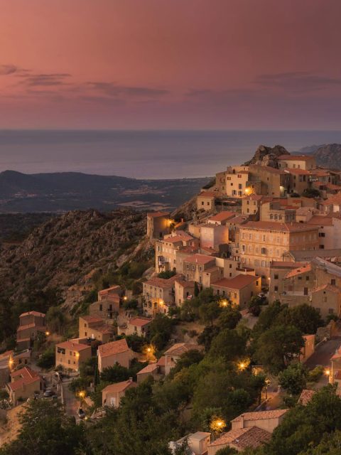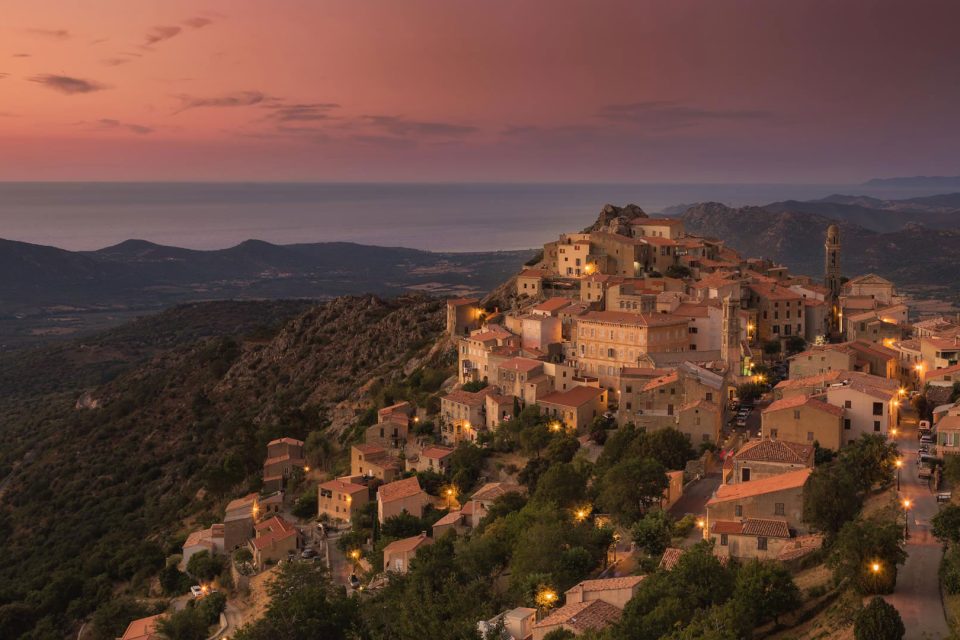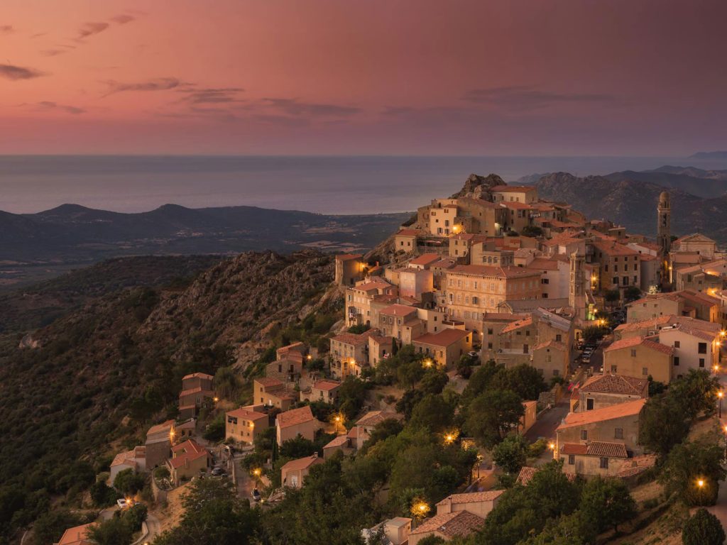 Lumière du soir sur le village de Speloncato, Corse