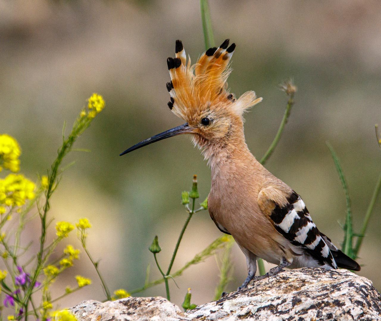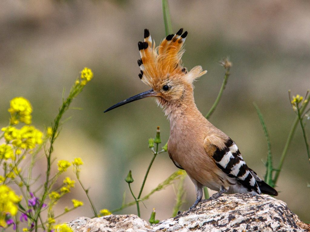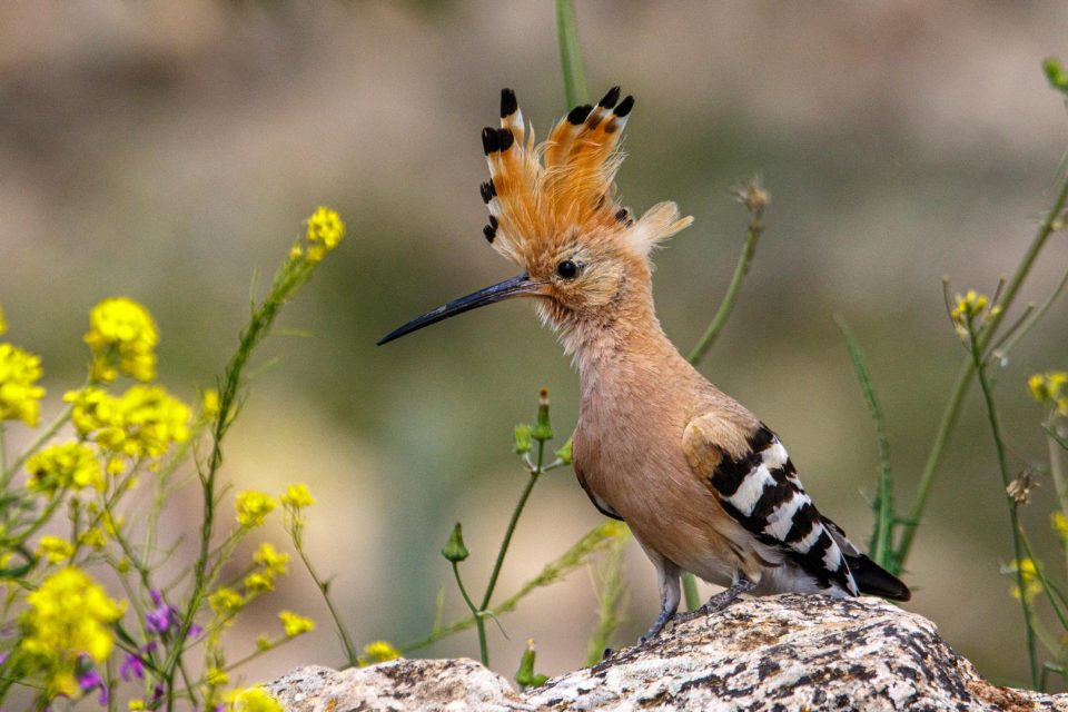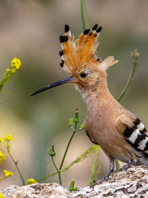 Abubilla descansando sobre una piedra