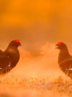 Tétras lyres mâles lors d’une parade nuptiale, Estonie