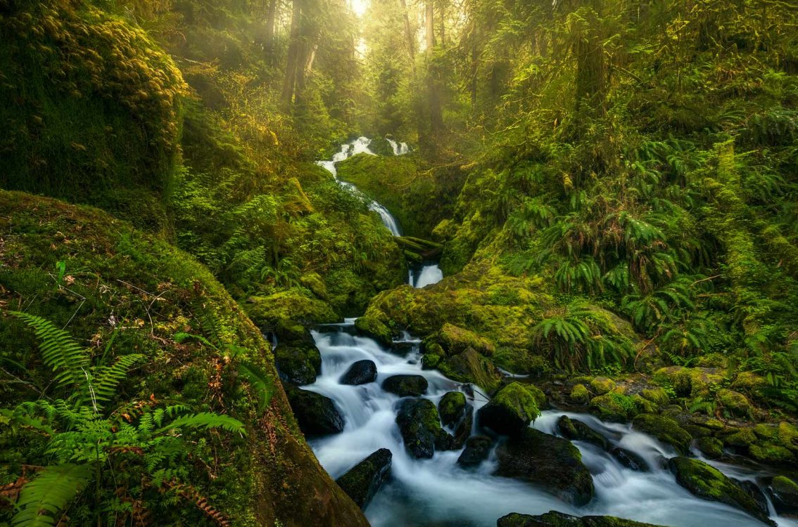 Una cascada en el Parque Nacional Olympic, Washington, EE. UU.