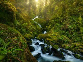 Cachoeira no Parque Nacional Olympic, Washington, EUA