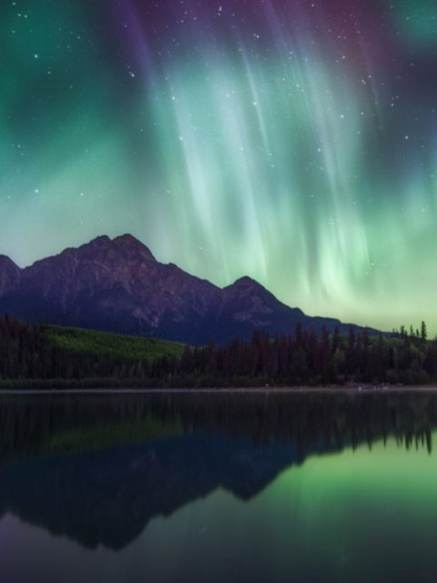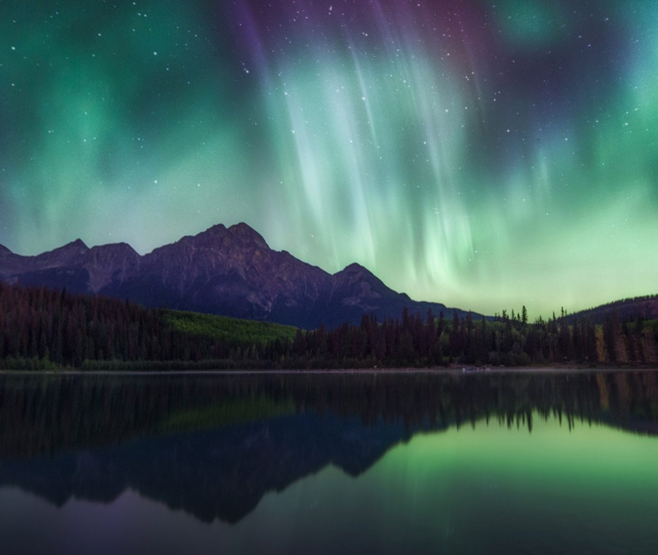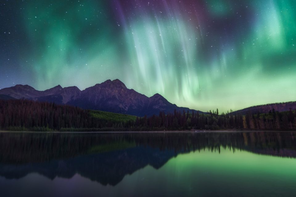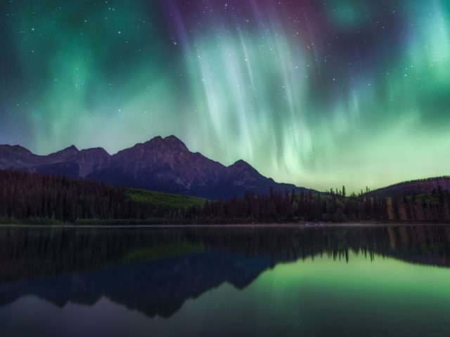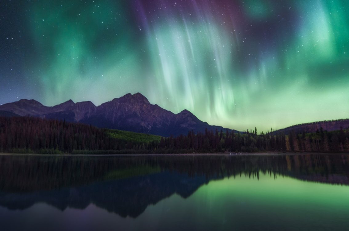 Northern lights over Patricia Lake in Jasper National Park, Alberta