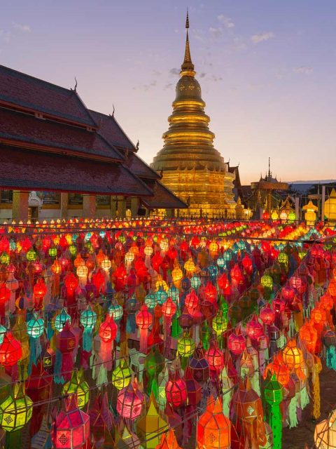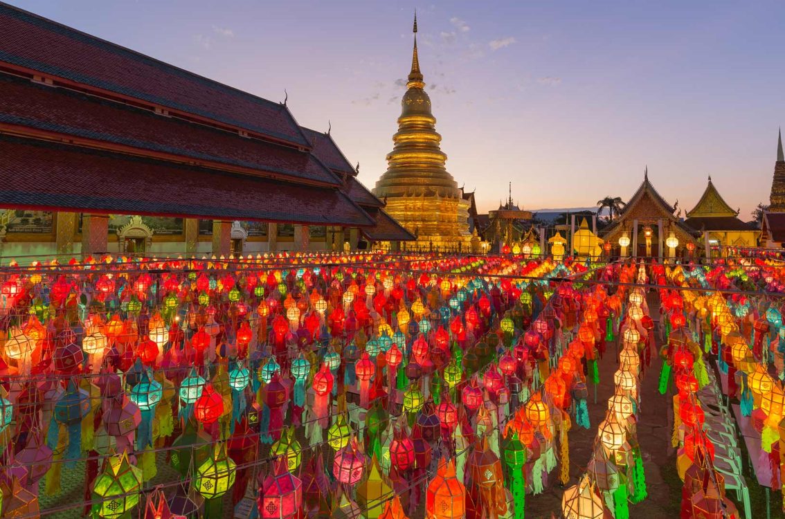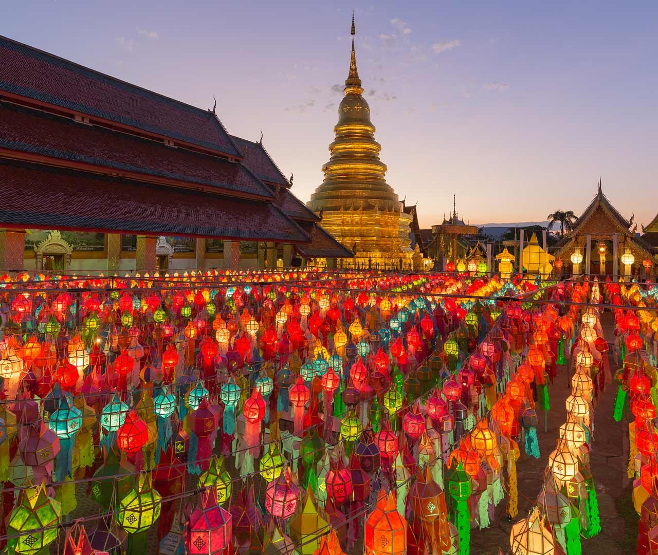 哈里朋柴佛塔寺的彩色灯笼, 南奔府, 泰国