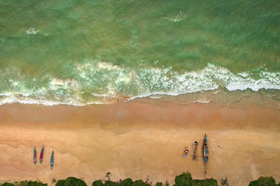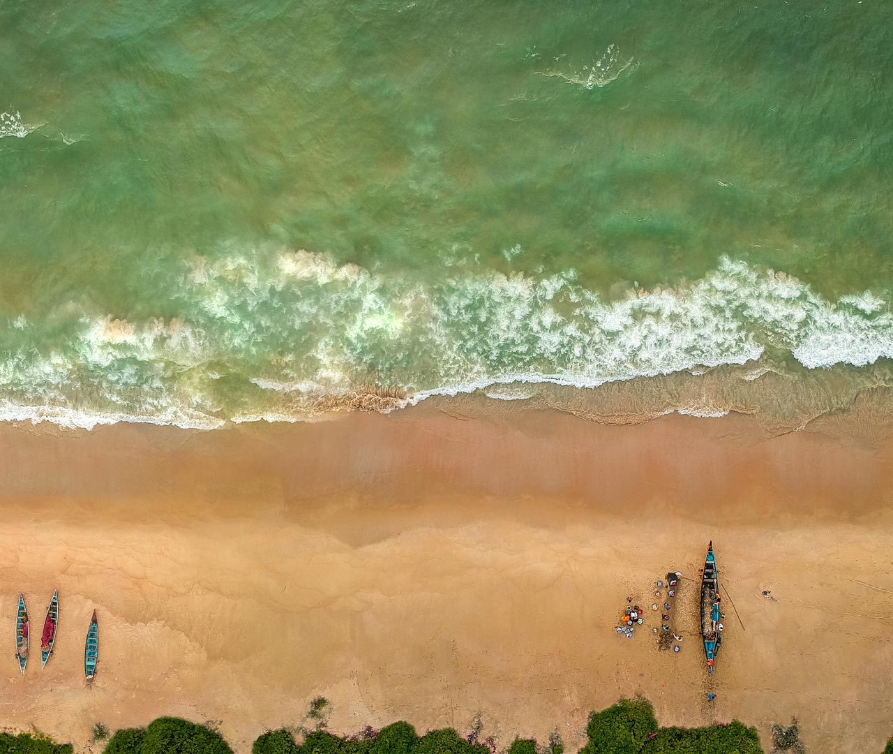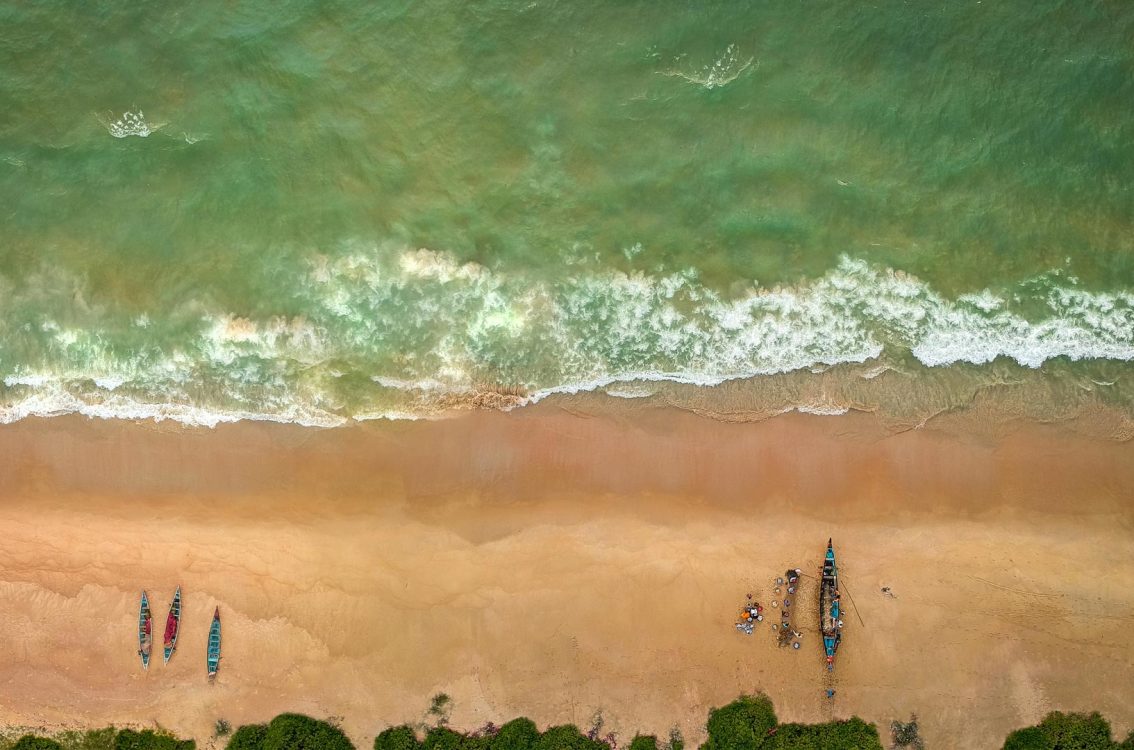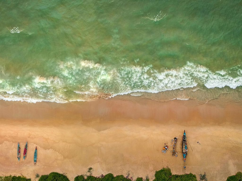 Aerial view of a sandy beach in Mangaluru, Karnataka