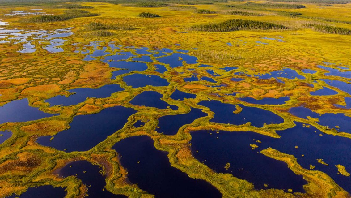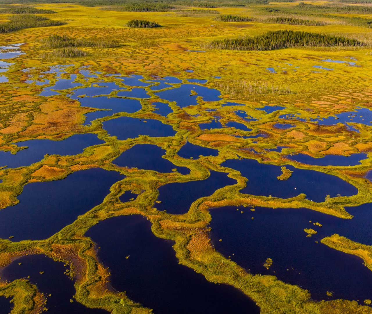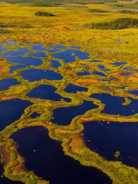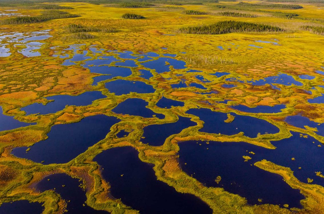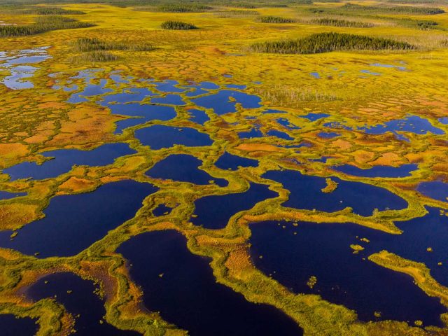 Aerial view of peatland in Martimoaapa Mire Reserve, Finland