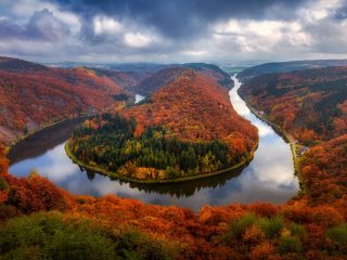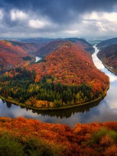 Blick auf die Saar im Herbst, Saarschleife, Mettlach, Saarland