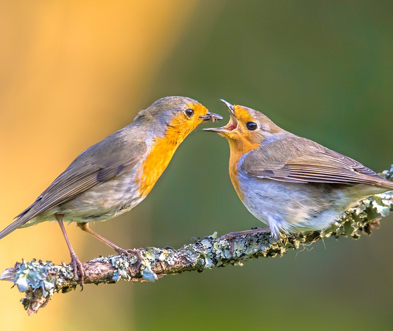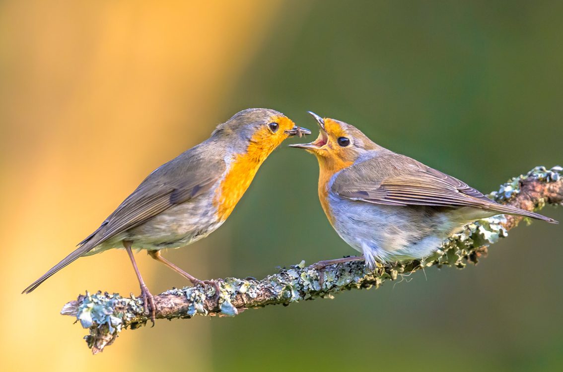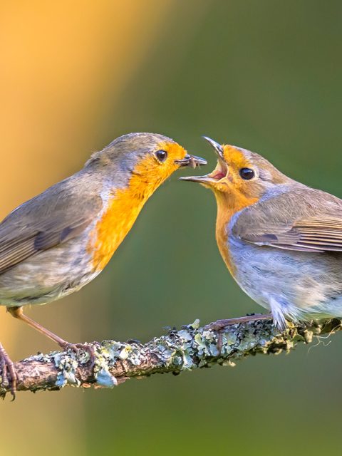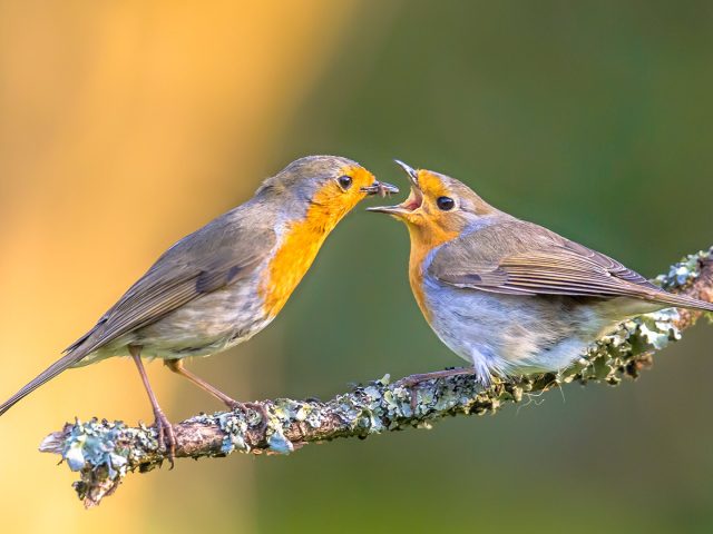A robin feeding its chick, Netherlands