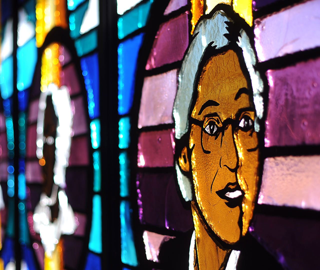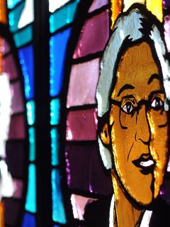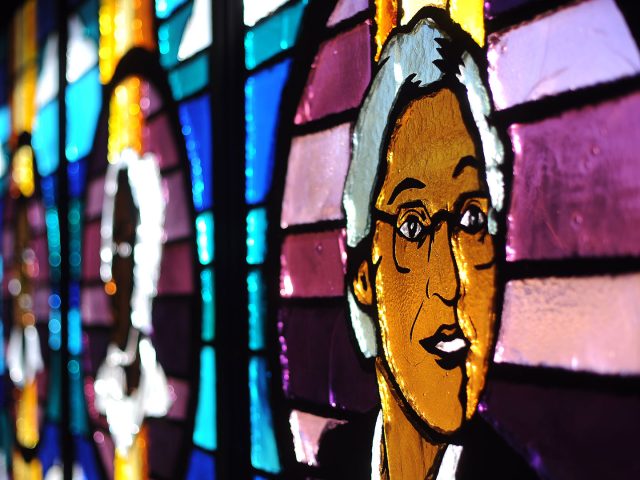 Rosa Parks in stained glass window, Shorter Community African Methodist Episcopal Church, Denver