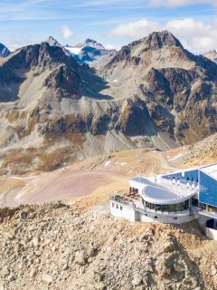 Stazione della funivia sul monte Piz Nair, Grigioni, Svizzera