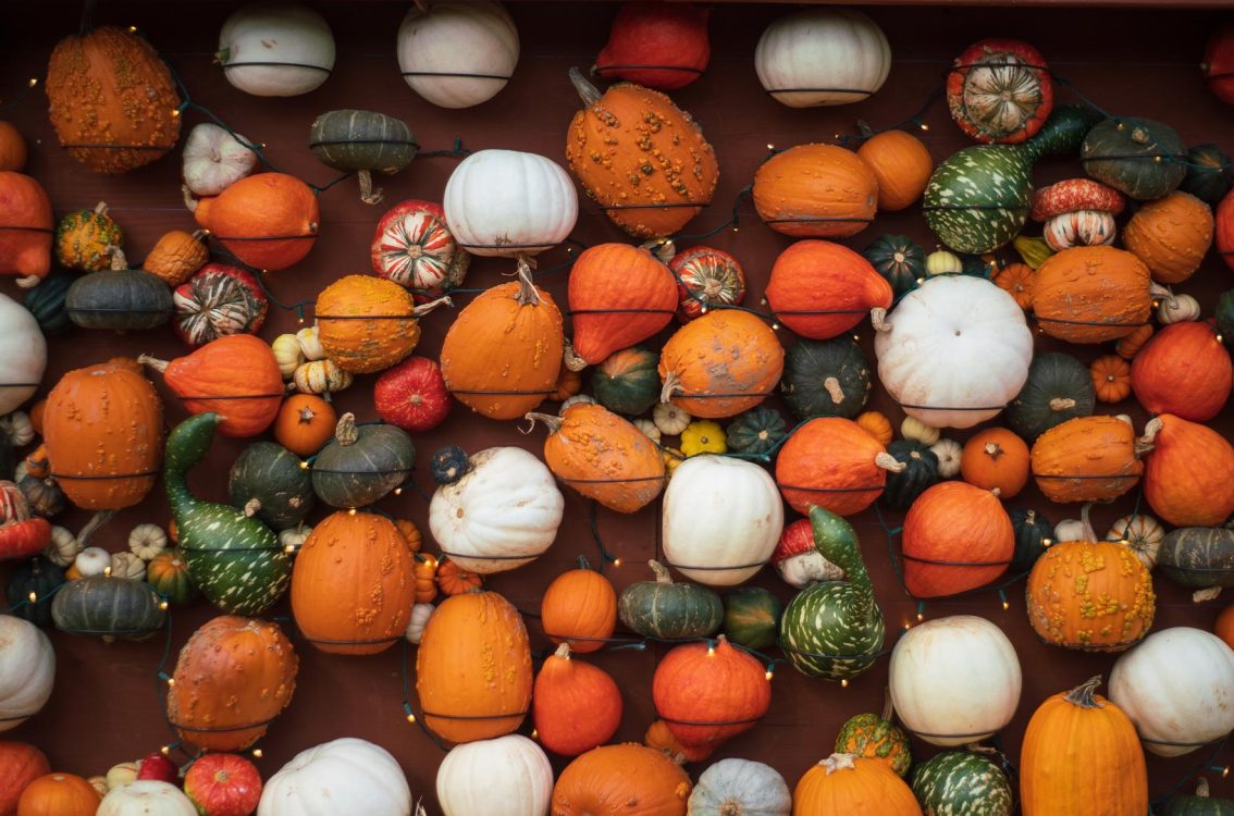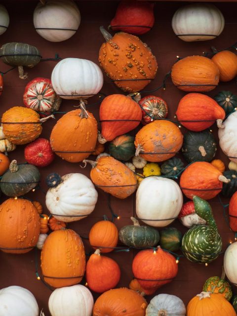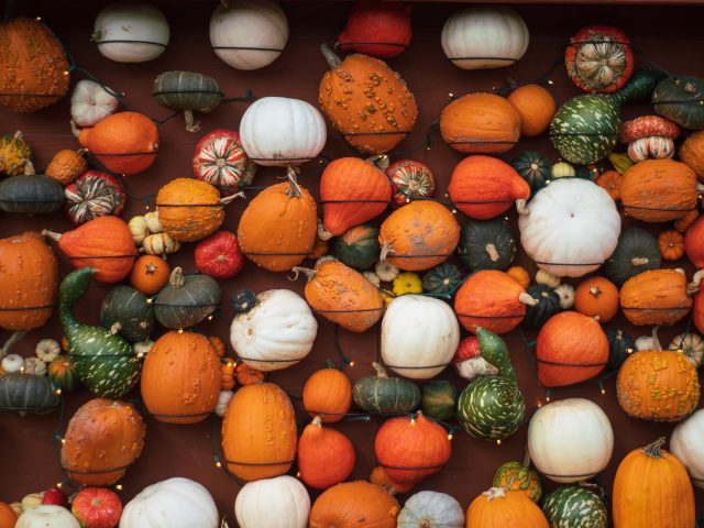 Different kinds of pumpkins and gourds