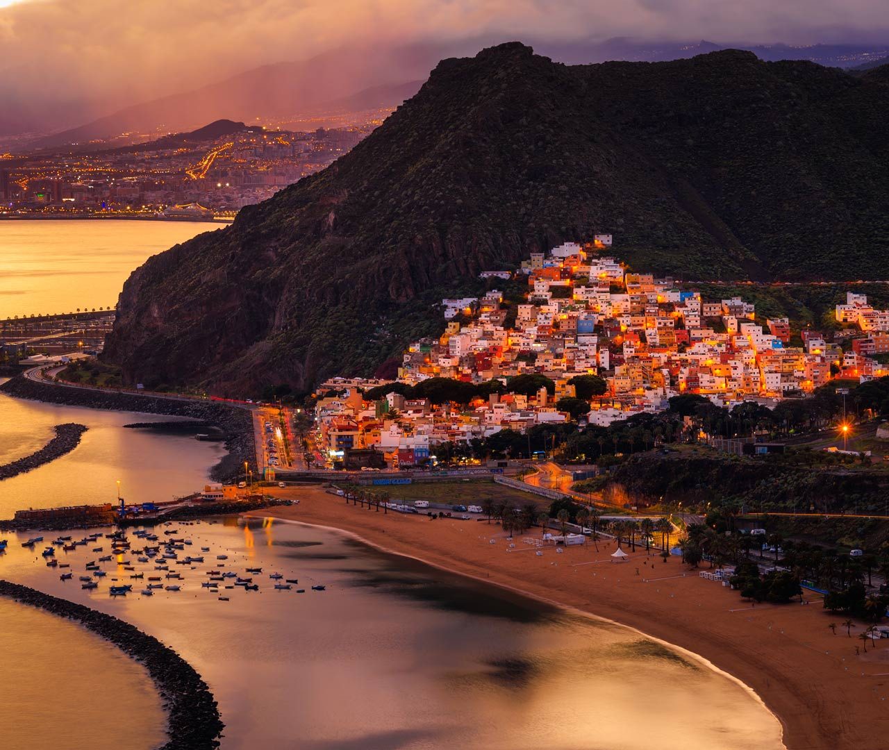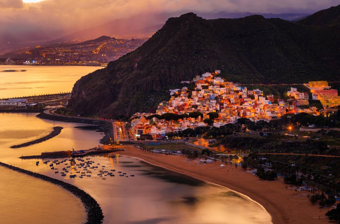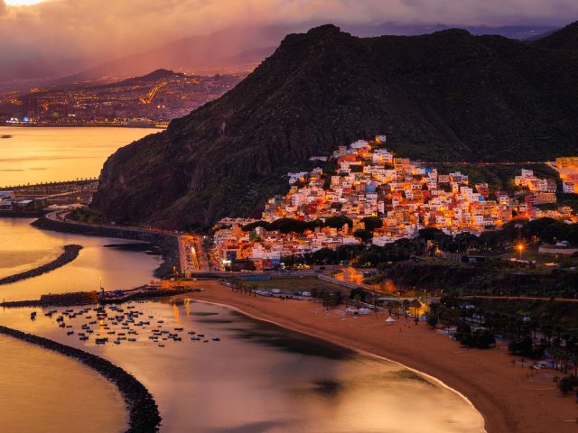Vista del atardecer de San Andrés y Playa de Las Teresitas, Tenerife