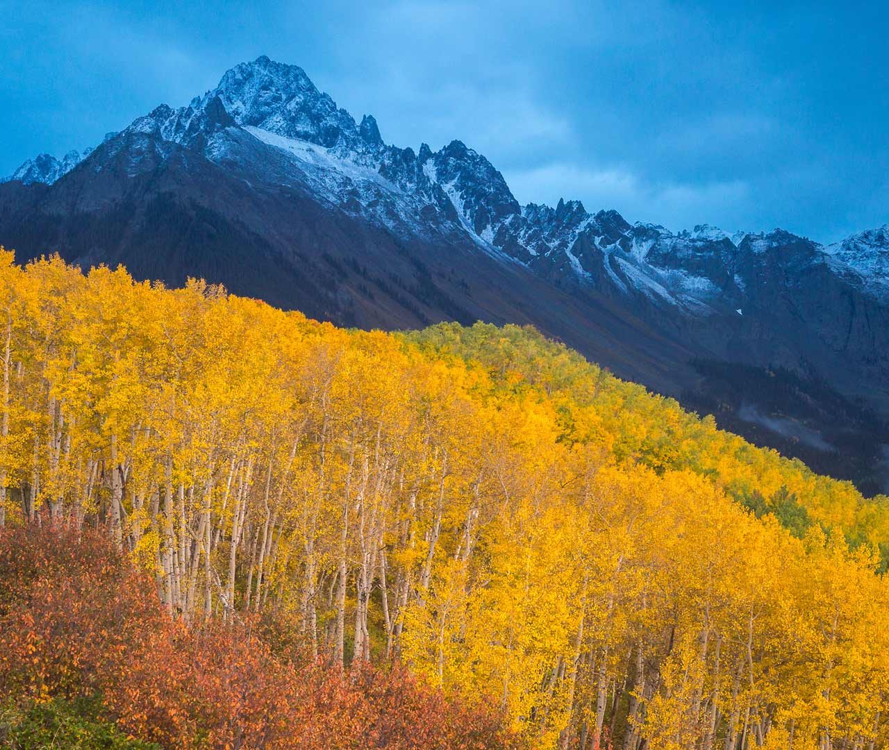 Fall colours below Mount Sneffels near Ridgway, Colorado, United States
