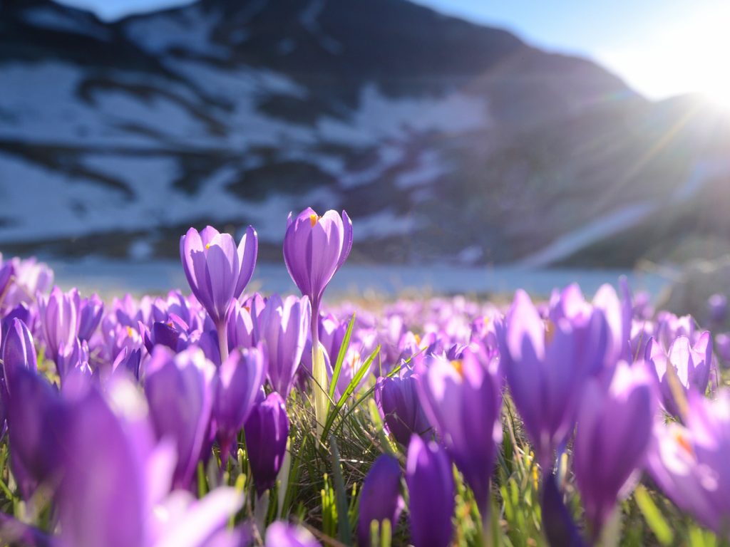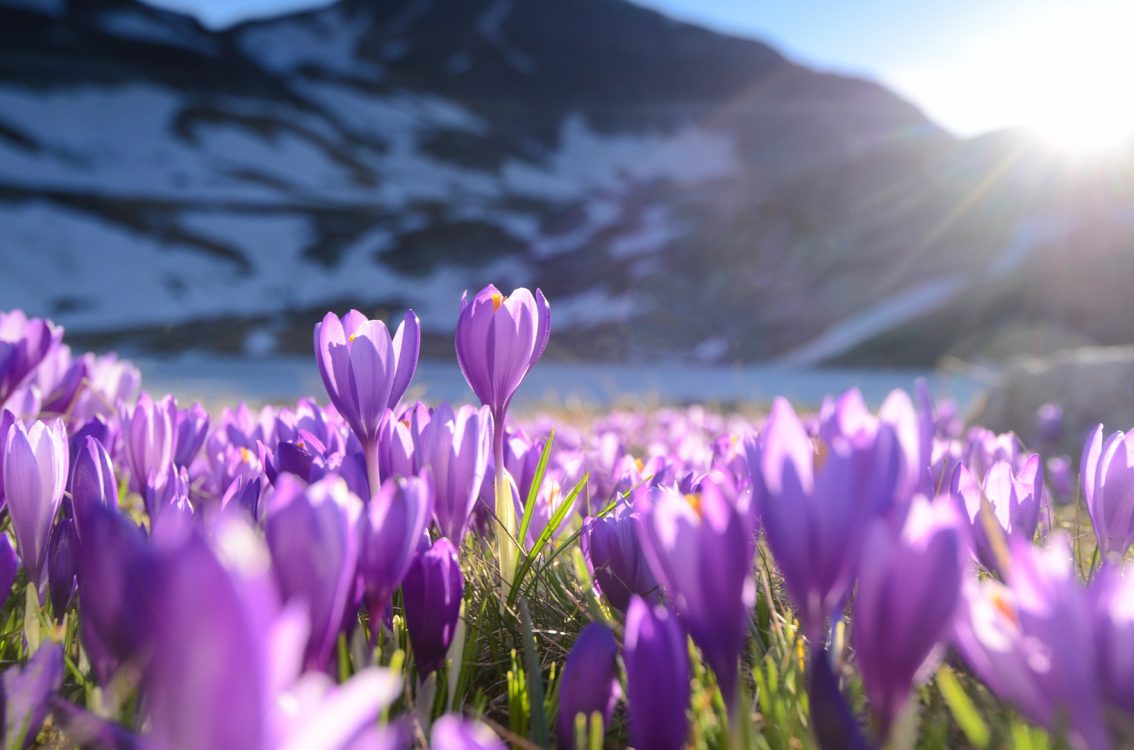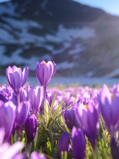 Purple crocus flowers, Seven Rila Lakes, Bulgaria