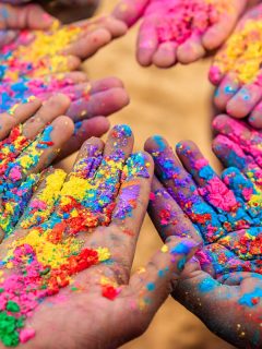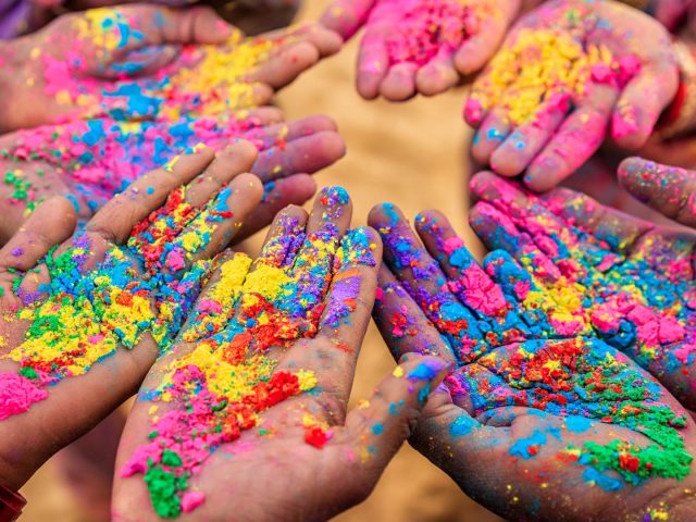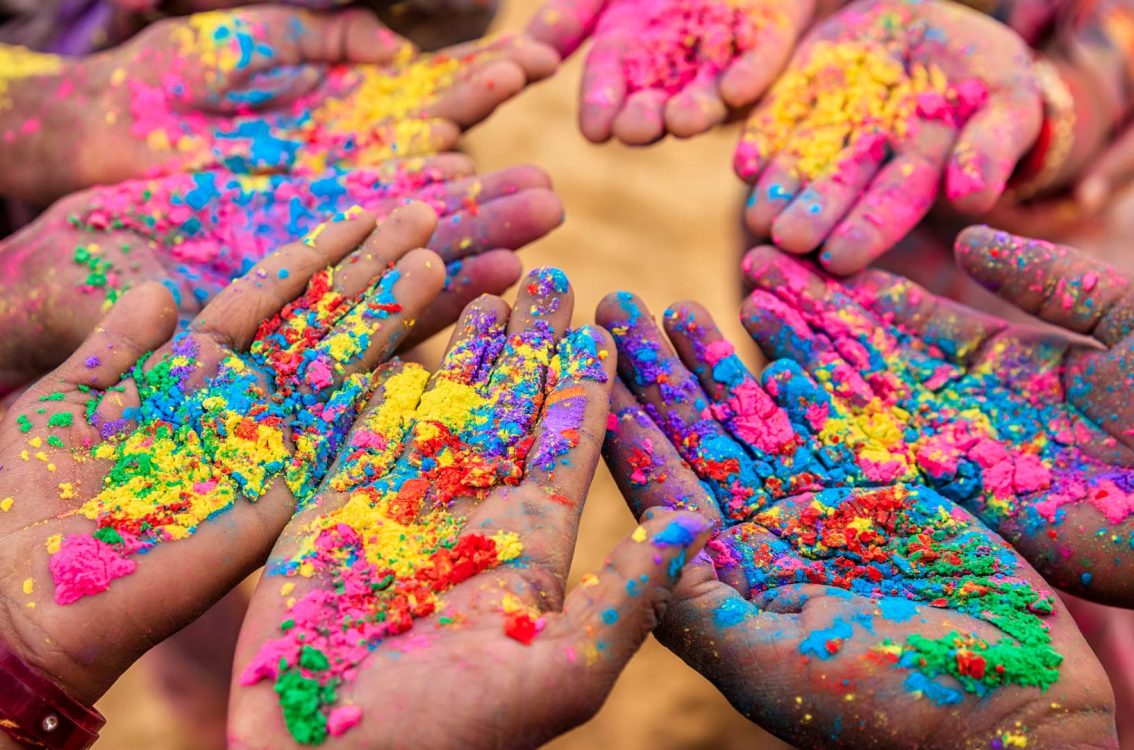 Group of people playing Holi in Rajasthan
