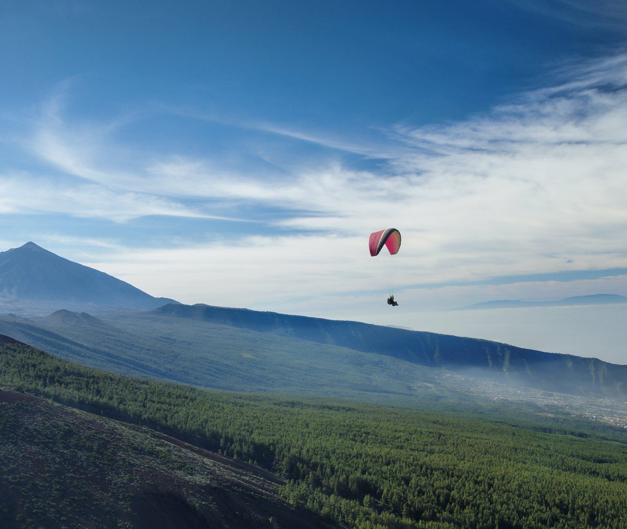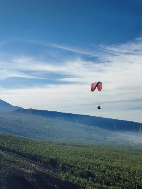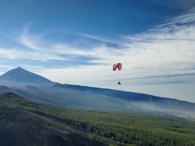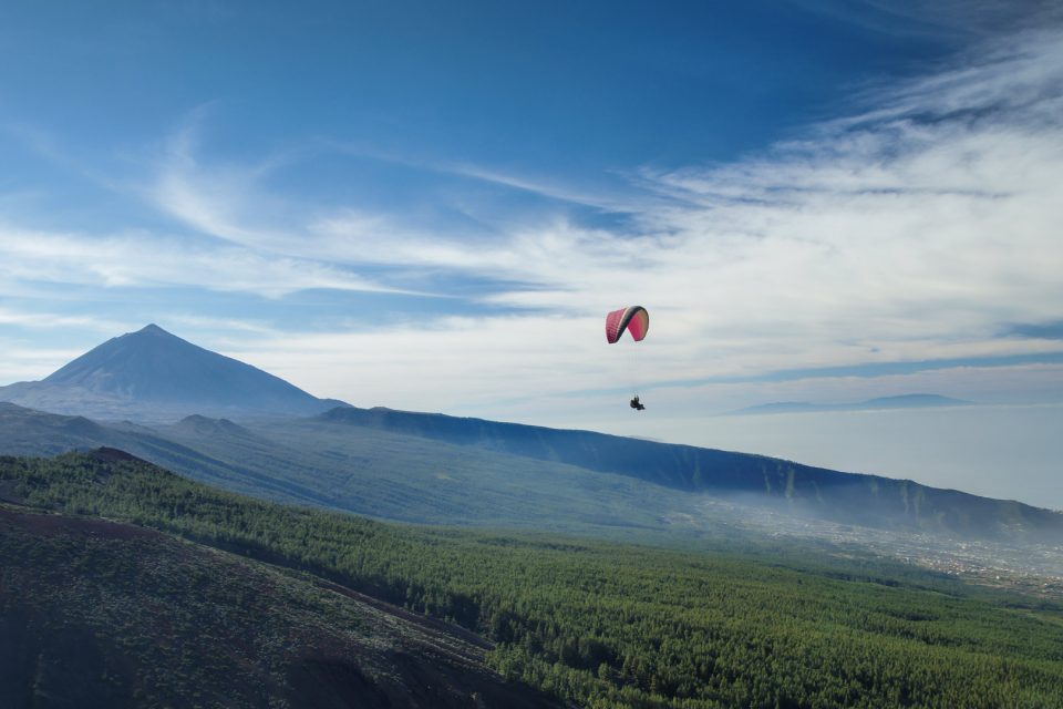 Parapente sobre el Parque Nacional del Teide, Tenerife, Islas Canarias, España