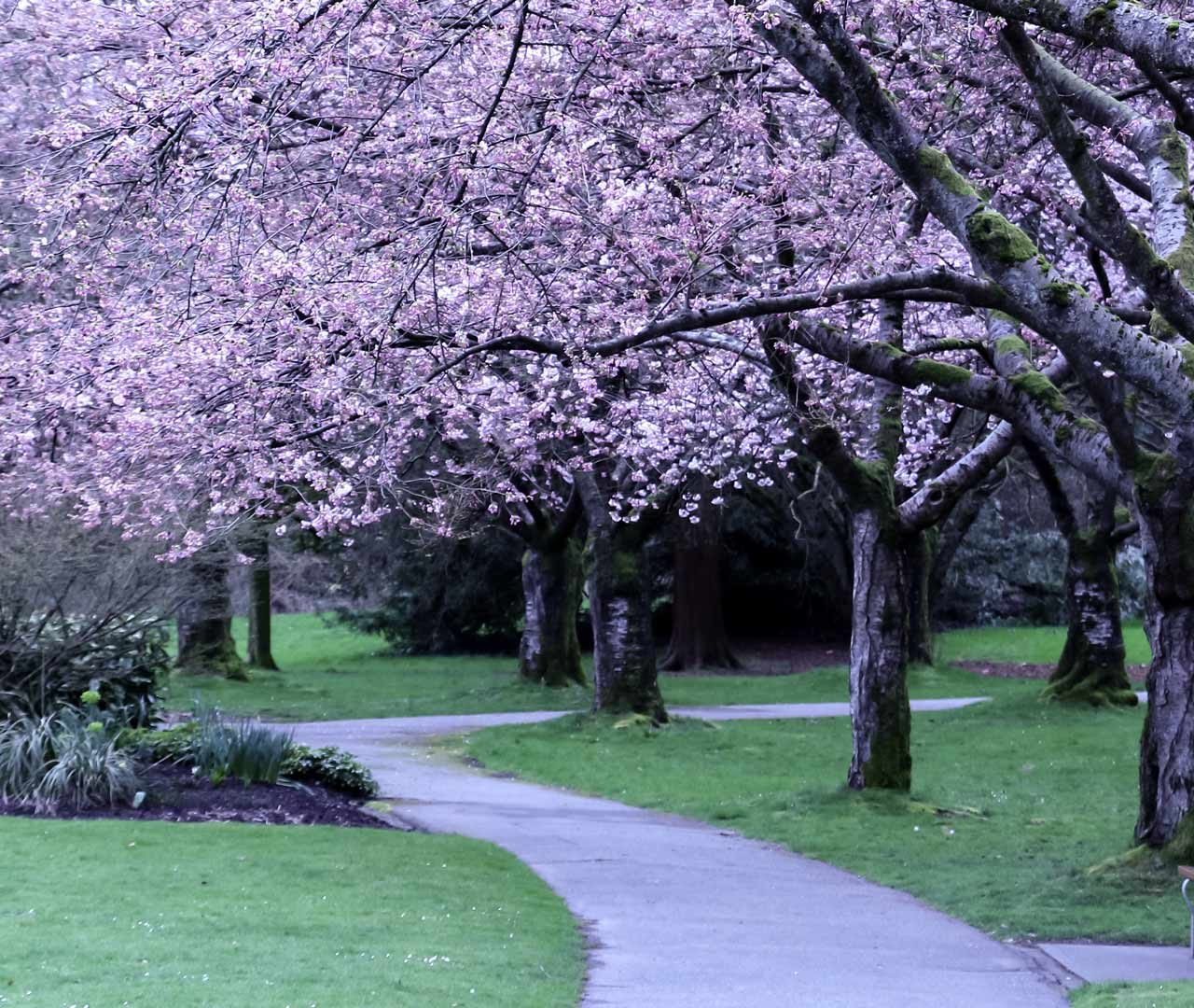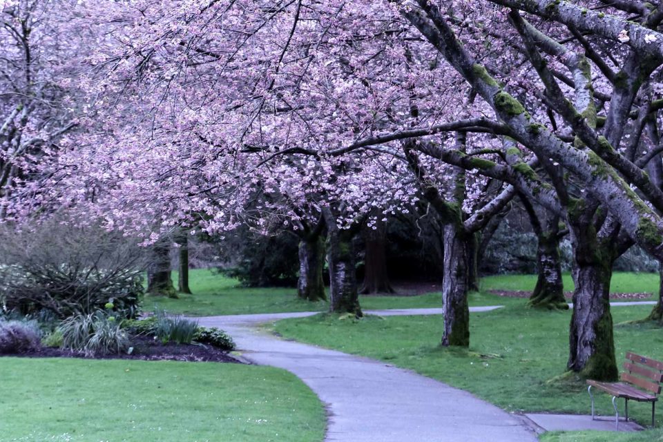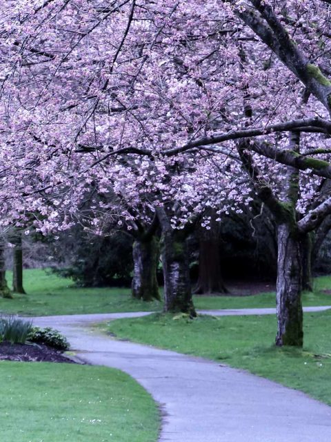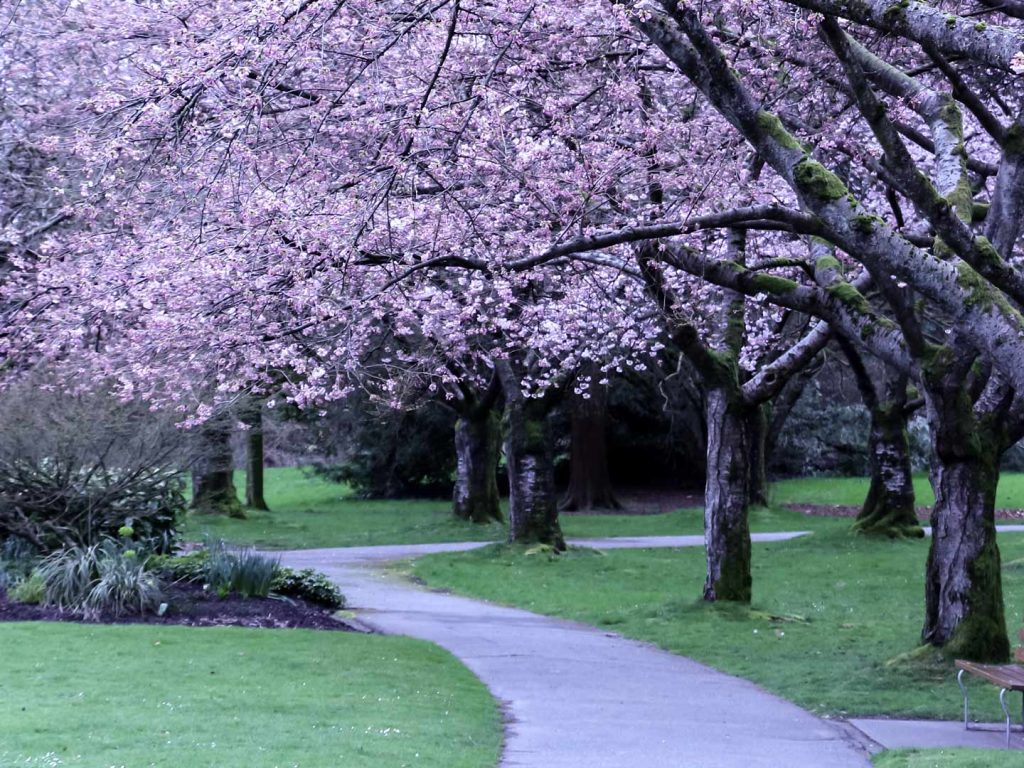 A canopy of cherry blossoms in Stanley Park, Vancouver