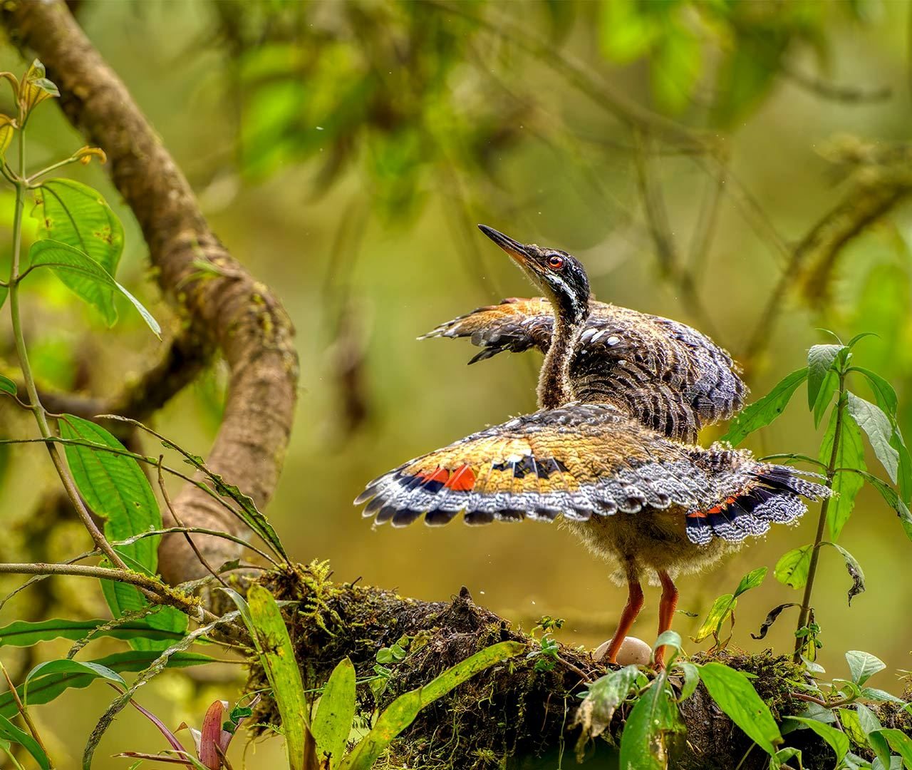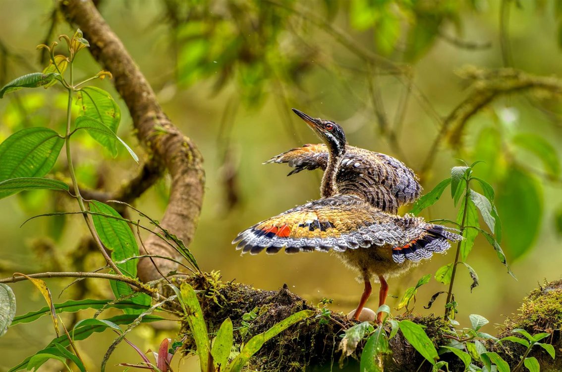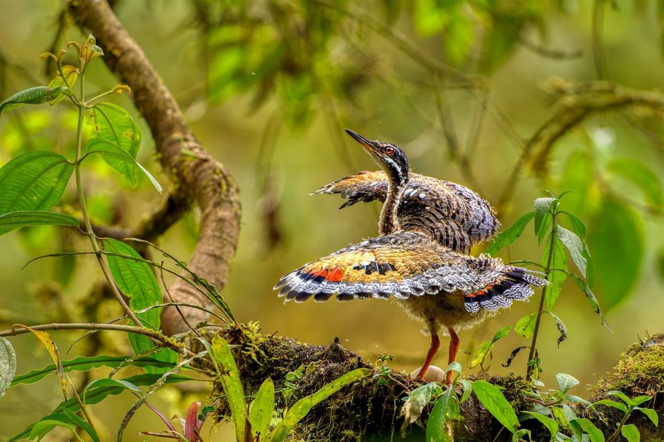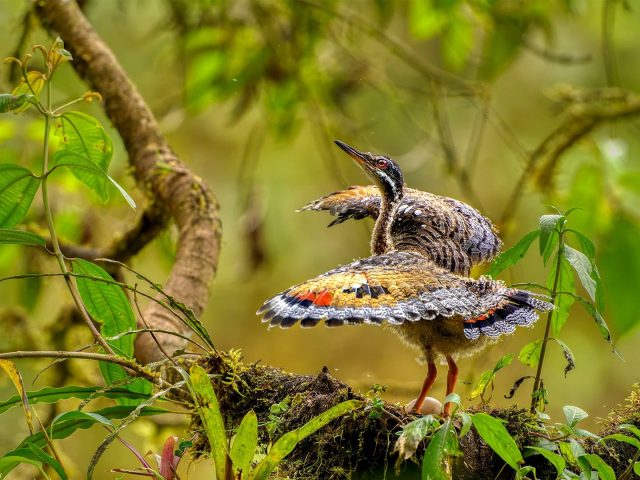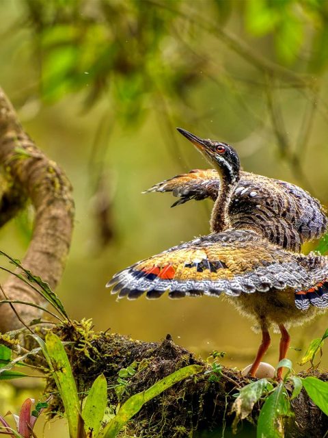 Juvenile sunbittern displaying at nest, Ecuador