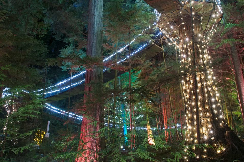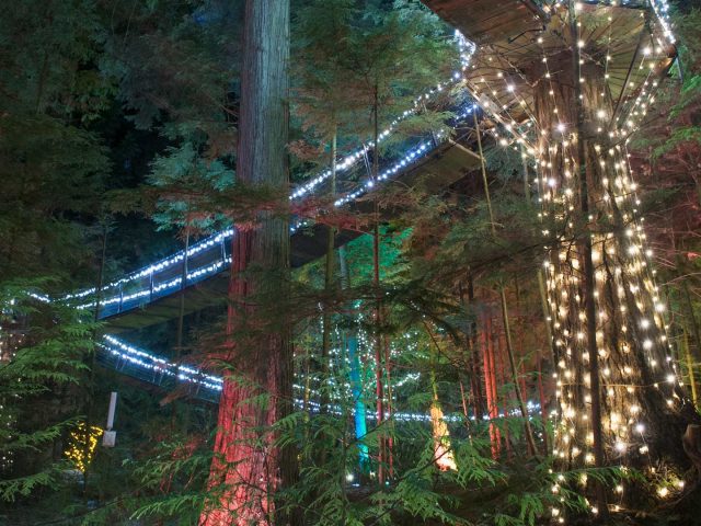 Illuminated Capilano Suspension Bridge Park, Vancouver, British Columbia