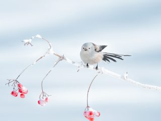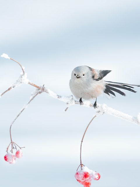栖息在树枝上的北长尾山雀,大庆市,中国黑龙江省