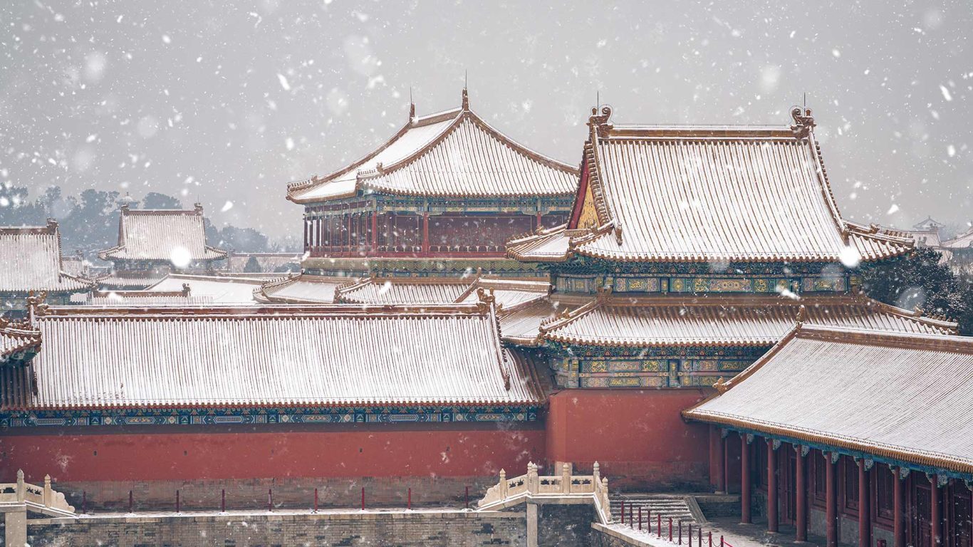 The Forbidden City in Snowfall, Beijing, China