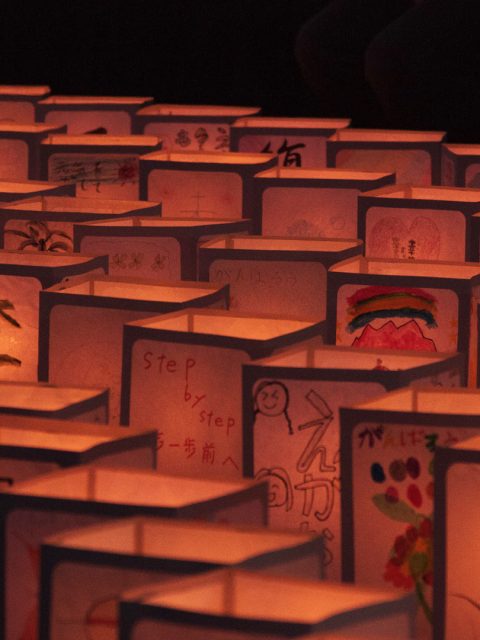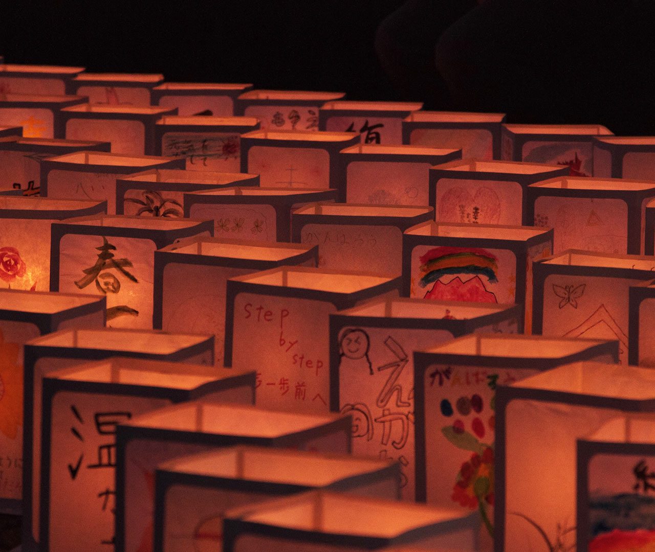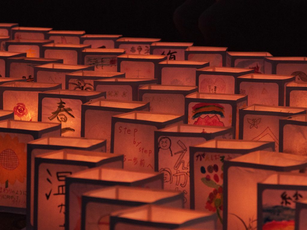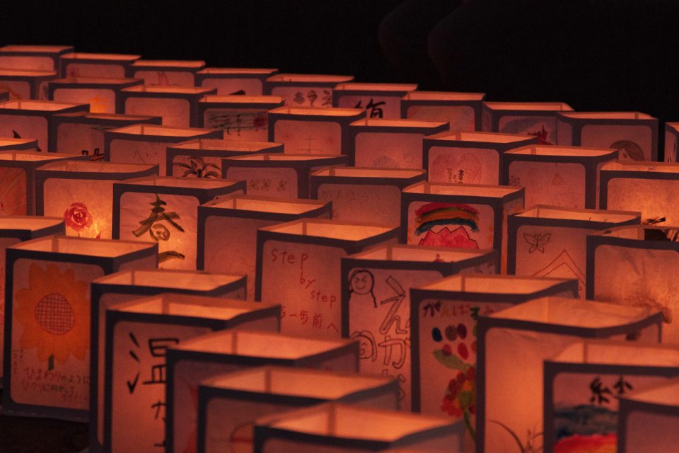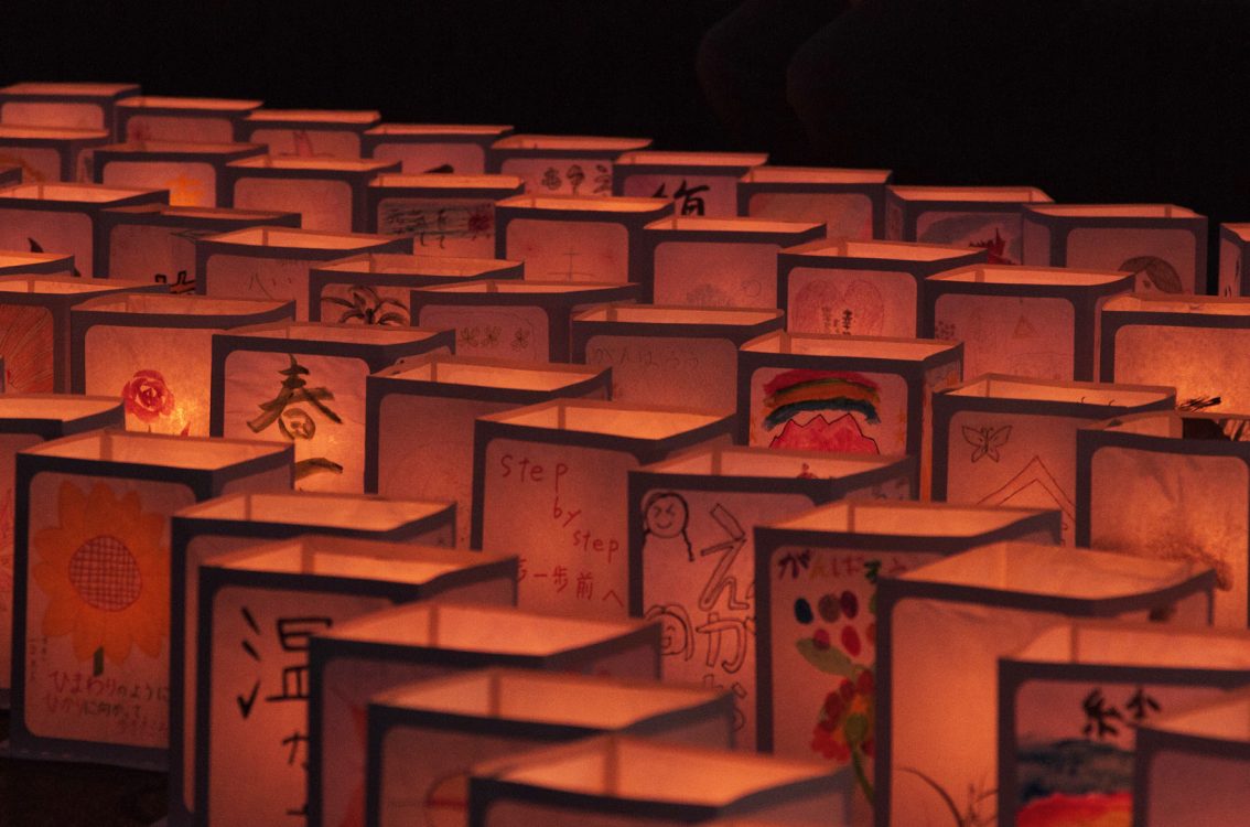 復興の願いが書かれた灯籠, 宮城県 名取市