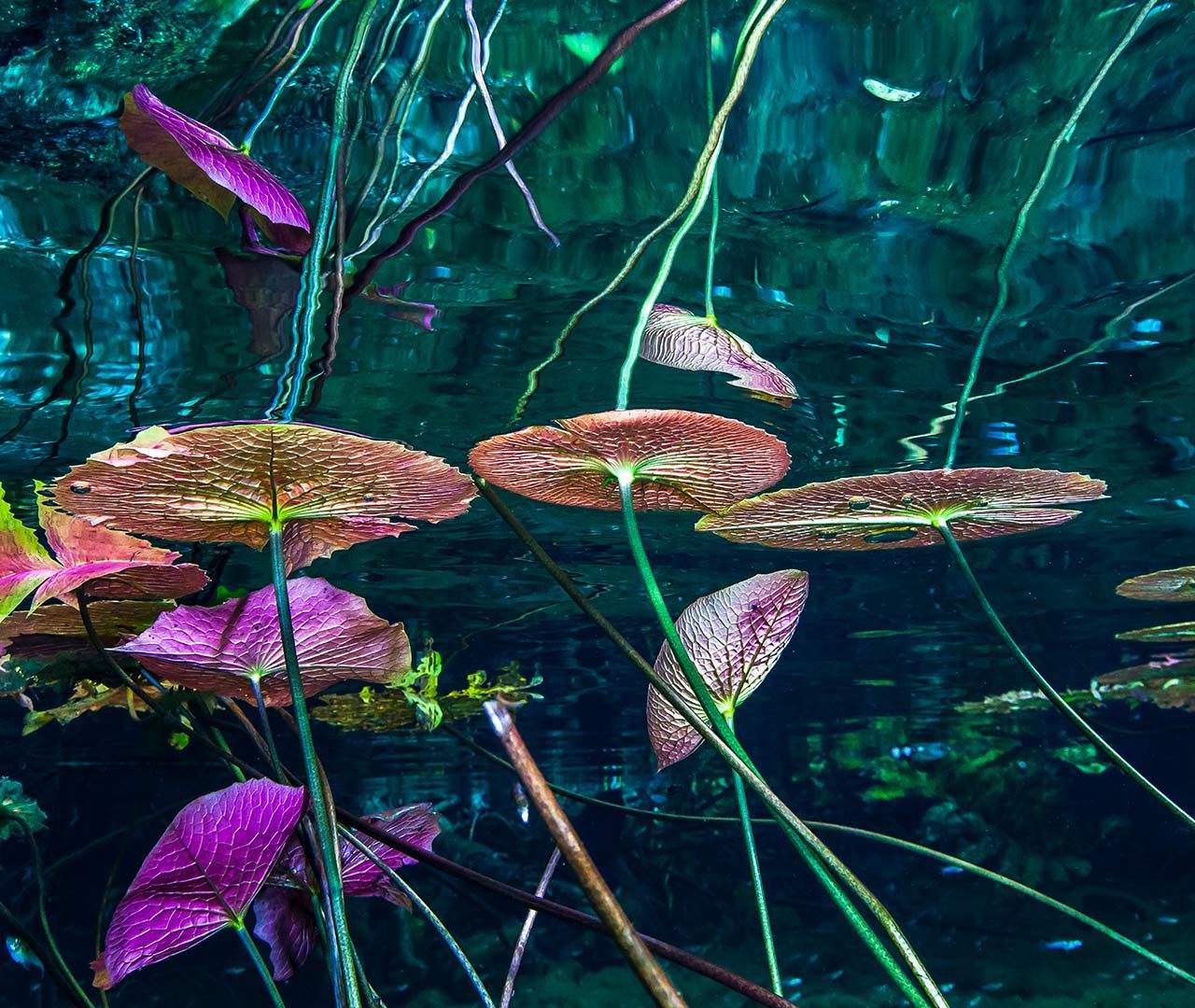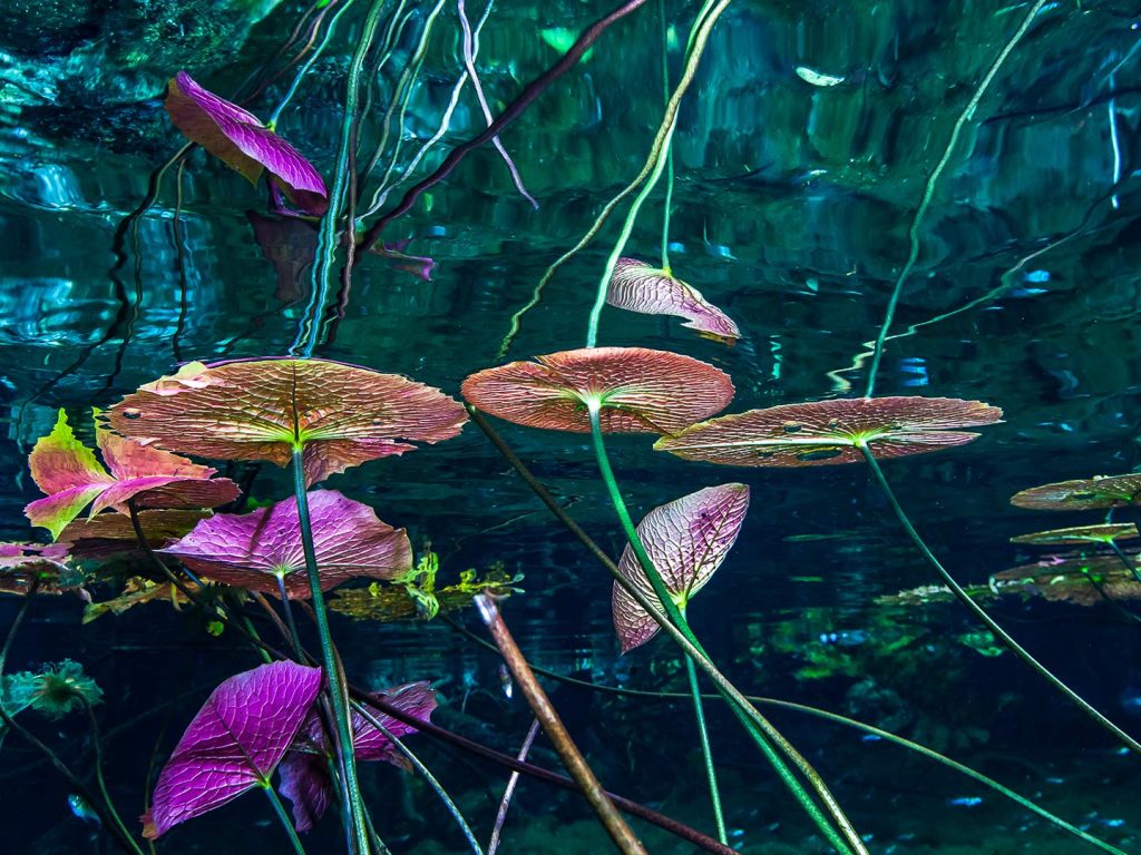 Des nénuphars au Gran Cenote, Tulum, Mexique