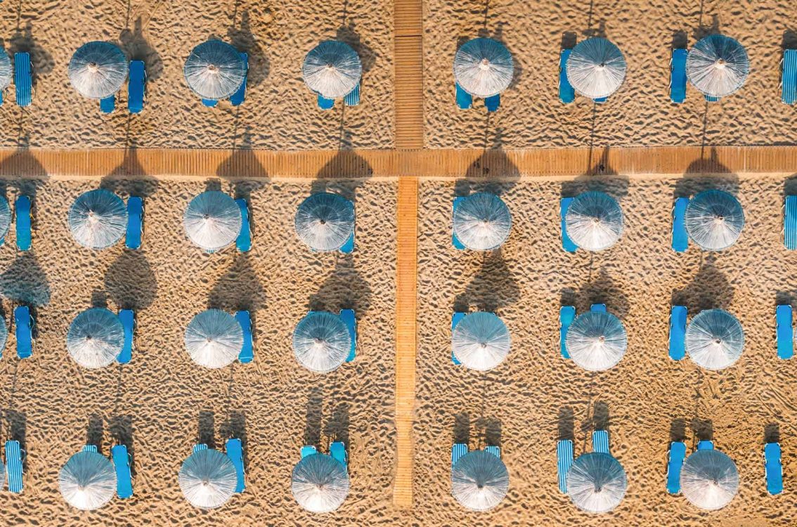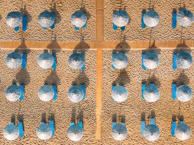 Espreguiçadeiras na praia de Vai, Creta, Grécia